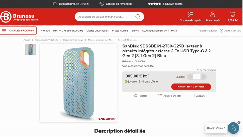 A great example appears on Bruneau’s product pages for storage devices such as the SanDisk Extreme Portable NVMe SSD.