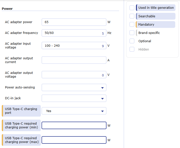 To improve clarity and minimize uncertainty, we introduced visual status indicators with distinct colors and combined pattern styles effectively showing when a feature has multiple status classifications (e.g., mandatory + searchable). These indicators help quickly identify feature relevance, purpose, and publishing readiness.