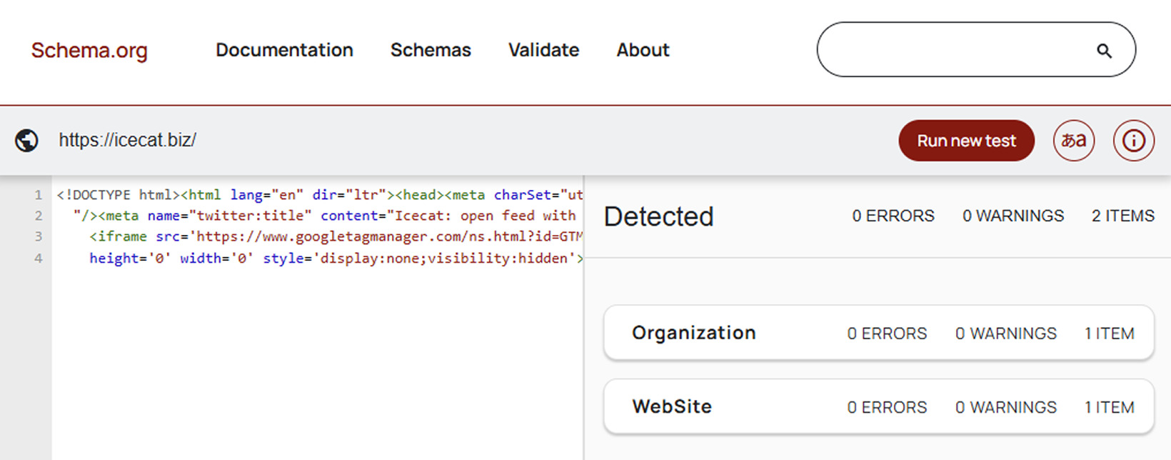We updated the Schema.org markups for Organization and Website entities to improve search engine understanding of Icecat.biz content. This enhances discoverability and can lead to richer search result displays.