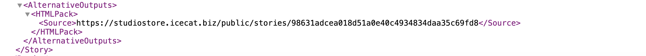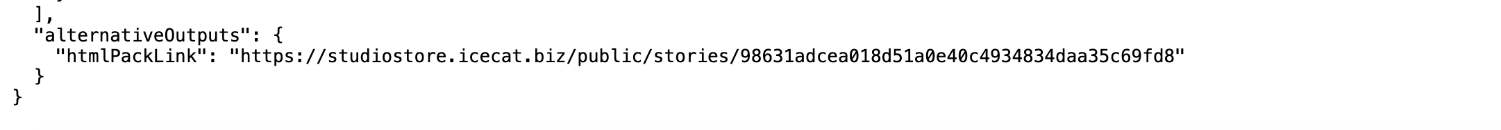 A new <AlternativeOutputs> node has been introduced in the XML/JSON structure. Within this node, the element contains a field that provides the direct URL to the generated ZIP package.