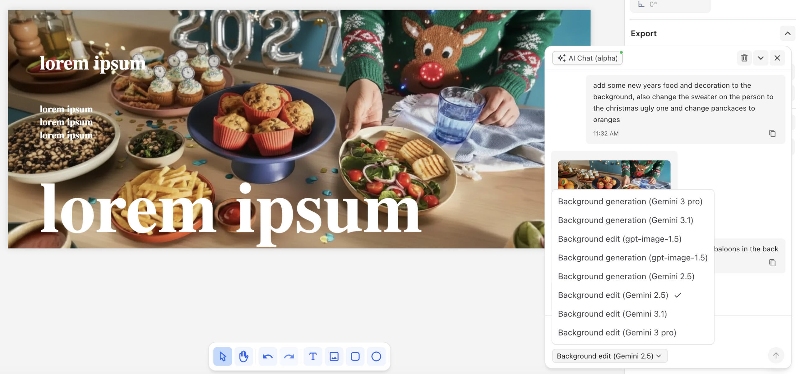Previously, the AI Assistant was focused primarily on generating new backgrounds from scratch. In Sprint 93, we are introducing a more precise way to manipulate visuals.