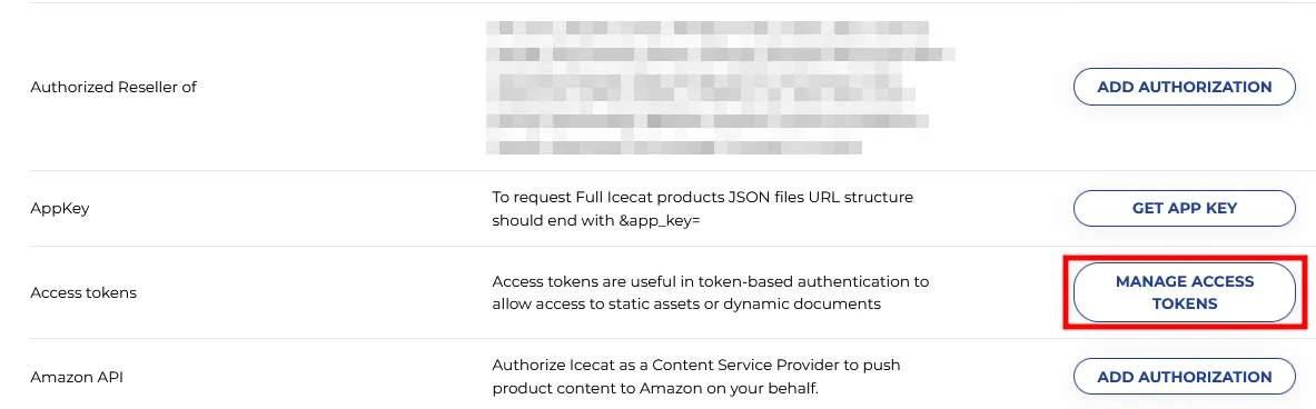 To retrieve them, follow MyIcecat → Access Tokens: